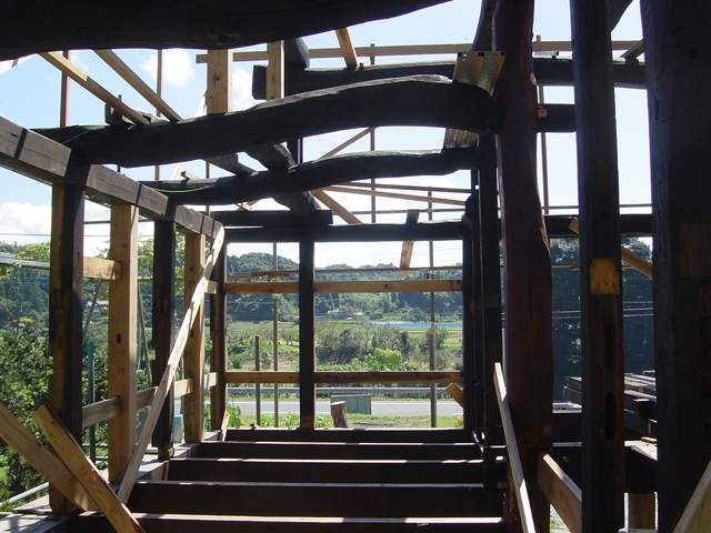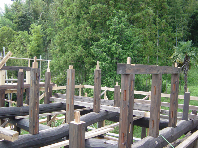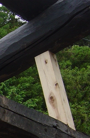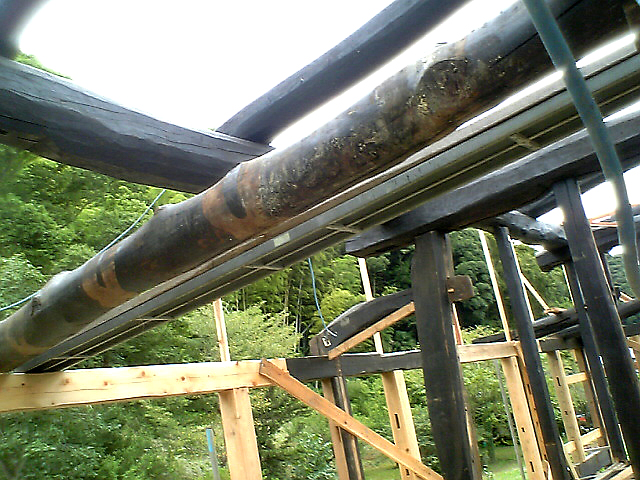 それと同時に、サス組みをやめて小屋組みをするので、母屋・母屋束に新材が使われます。