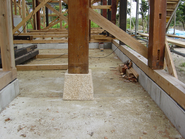 9寸のケヤキの柱を支える 縁の下の力持ち ではなく 【土間の力持ち】です。