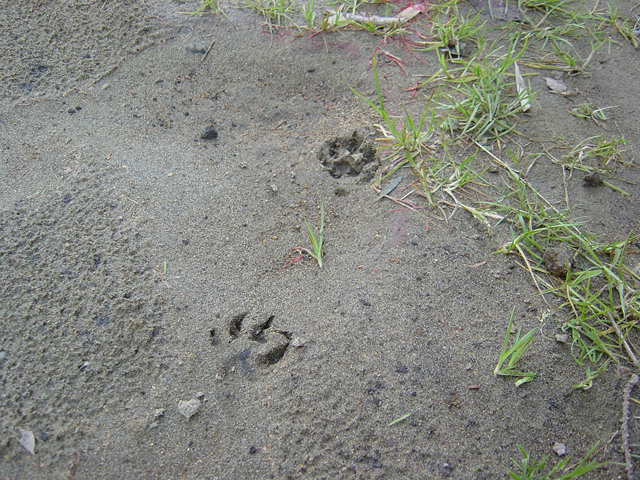 我が家の 裏庭を通過したのも恐らくタヌキでしょう。砂の上を歩いてたまには存在感を示そうと考えたか考えないか・・・・