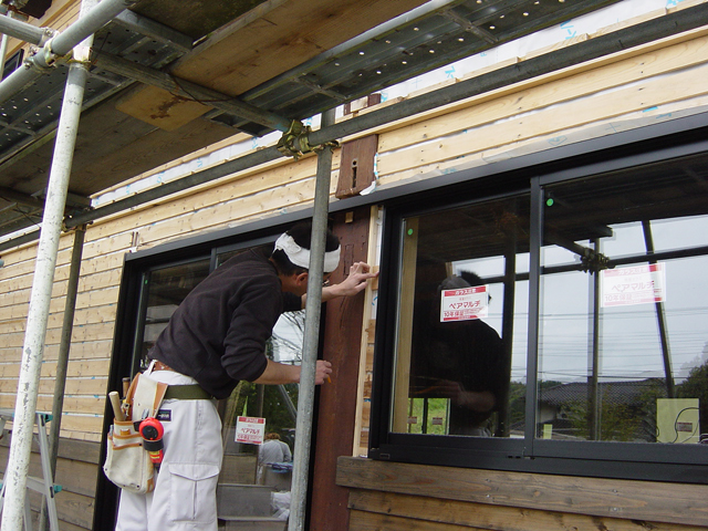 DSC05707-02.jpg外壁の仕上げは 建物本体と同じ 横張の腰板で作業が始まっていました。