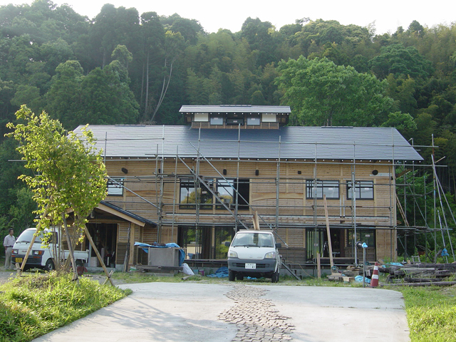DSC05768-02.jpg付け柱の施工がほぼ終わり これが塗装され 漆喰の下地が張られて左官やさんが仕上げをします。