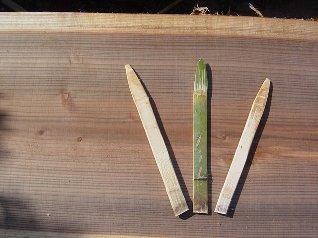 孟宗竹は 木面にはやさしいのですが、硬度 鋭利さが不足で 竹ナイフ作り専任者が居て 側でどんどん供給していかないと、スムースな作業環境が生まれませんでした。