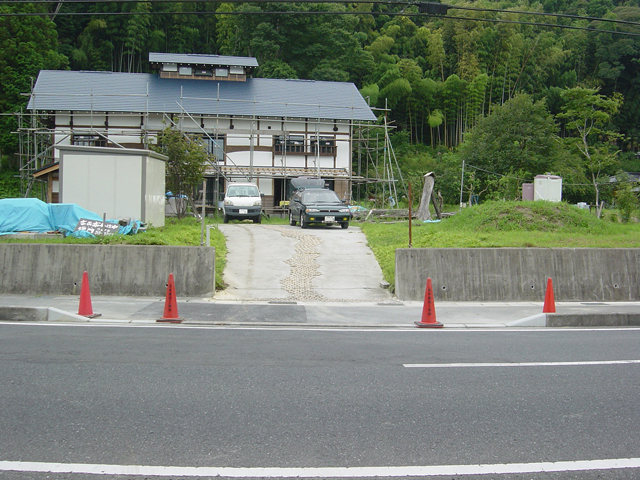ここの擁壁は 県道を造るときに土地の所有者が供出した土地に必要と判断されたものです。その出入り口と 縁石の関係がアンバランスなので 道路を管理する県に縁石を切ってもらいたいと申し入れをしました。