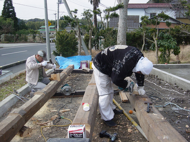 刻み・補修作業は 構想が決定してしまえば 間違いのないように作業しさえすればいいと簡単に言いますが、一つ一つ手作業です。
